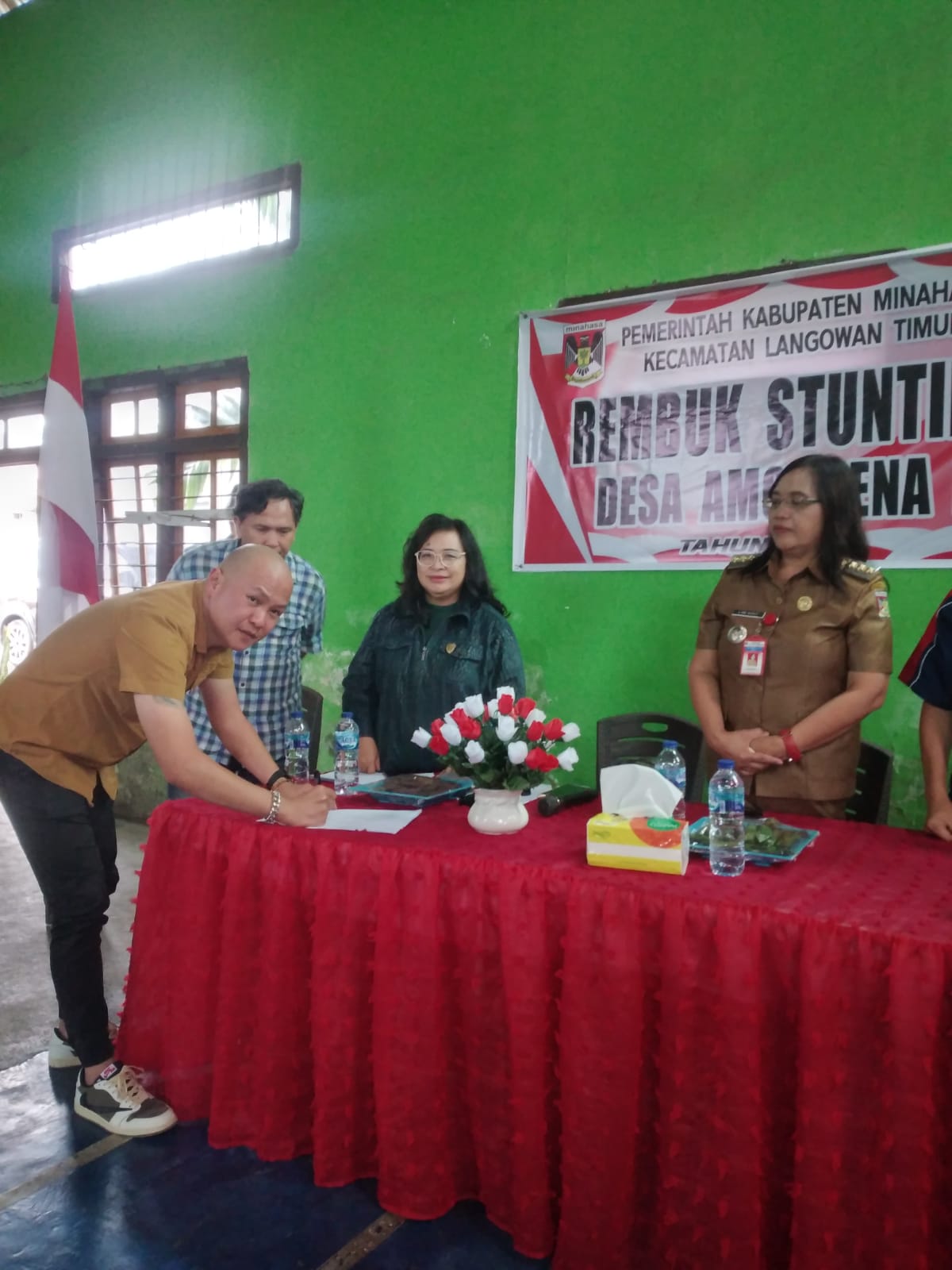 Kegiatan yang berlangsung di Balai Desa Amongena Satu ini dirangkaikan pula dengan agenda Rembuk Stunting dan dihadiri Camat Langowan Timur, Ir. Liby Supit.