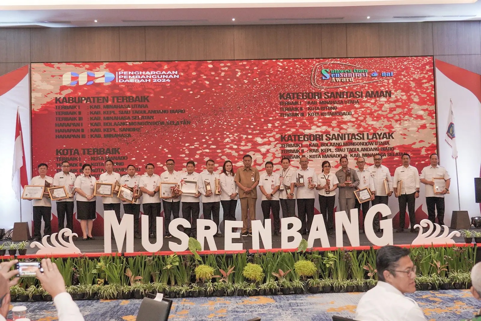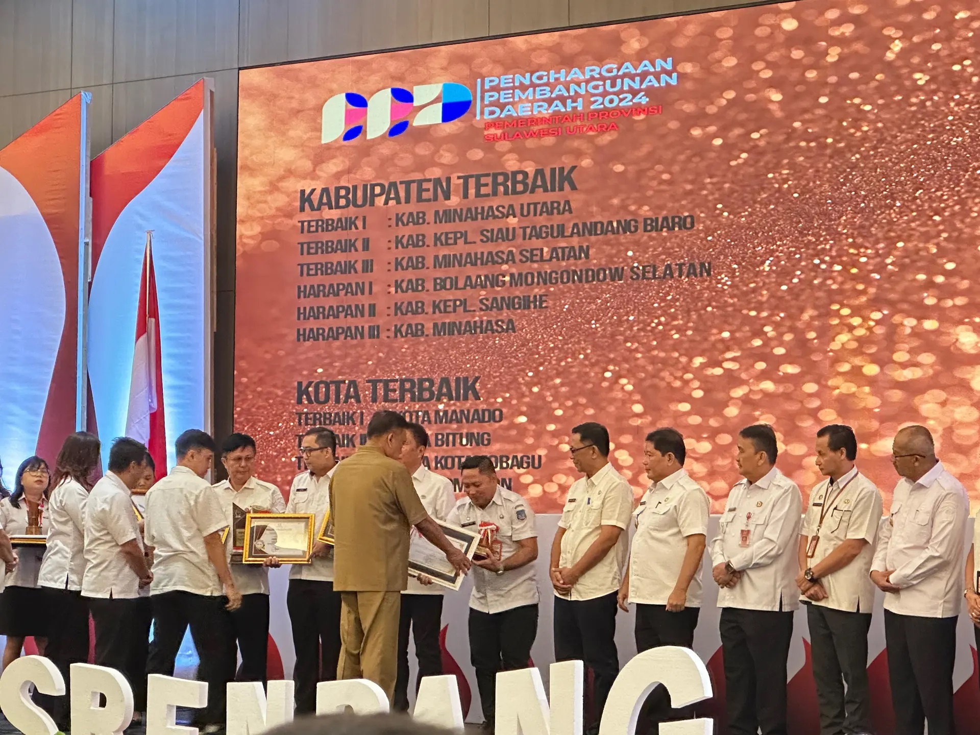 Penghargaan ini diterima Penjabat Bupati Minahasa Dr Jemmy S Kumendong MSi, yang diserahkan langsung oleh Gubernur Sulut Olly Dondokambey SE, disela sela Musyawarah Perencanaan Pembangunan Daerah (Musrenbang) Rencana Pembangunan Jangka Panjang Daerah (RPJPD) tahun 2025-2045 dan Musrenbang Rencana Kerja Pemerintah Daerah (RKPD) tahun 2025, Provinsi Sulut, di Manado, Rabu (25/04).