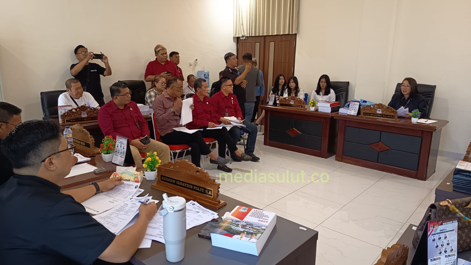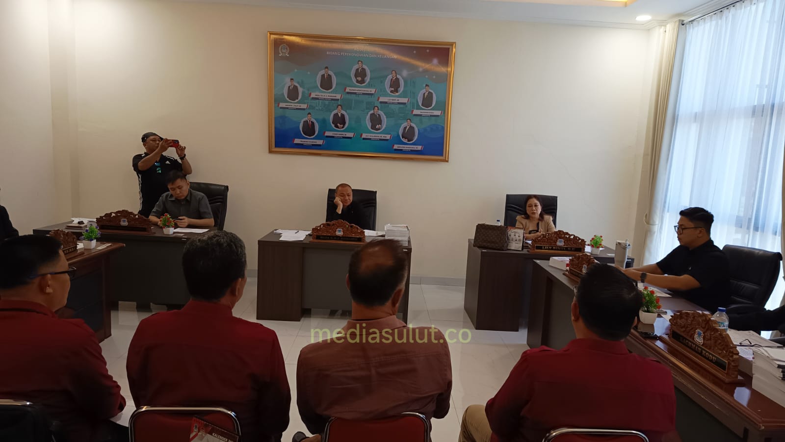 Wakil Ketua Komisi II Reza Rumambi memimpin jalannya rapat, didampingi Sekretaris Lily Binti SE serta personil lain, seperti Lily Walandha SE MBA, Adolfina Wangania SH, Rahman Kodu, Andrew Pamit dan Franco Wangko, Selasa (31/3/26).