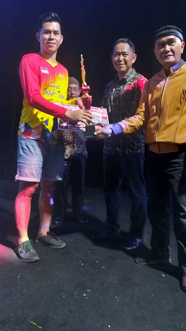 Ketua Harian PBVSI Bolmut Moh. Rofiq Pangau mewakili Kapolres Bolmut AKBP Wahyu Purwidiarso SH SIK selaku Ketua Umum Pengurus Kabupaten (Pengkab) PBVSI Bolmut menyerahkan hadiah bagi para Juara Voli Pantai Putra. Berupa trophy, piagam, dan uang pembinaan.