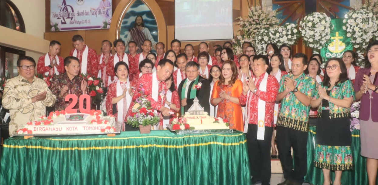 Walikota Tomohon Caroll Joram Azarias Senduk SH bersama Ketua TP-PKK Kota Tomohon drg. Jeand'arc Senduk-Karundeng menghadiri Ibadah Syukur Hari Ulang Tahun ke-178 Jemaat GMIM Kakaskasen Pniel dan dirangkaikan dengan penutupan kegiatan hari jadi ke-20 Kota Tomohon.