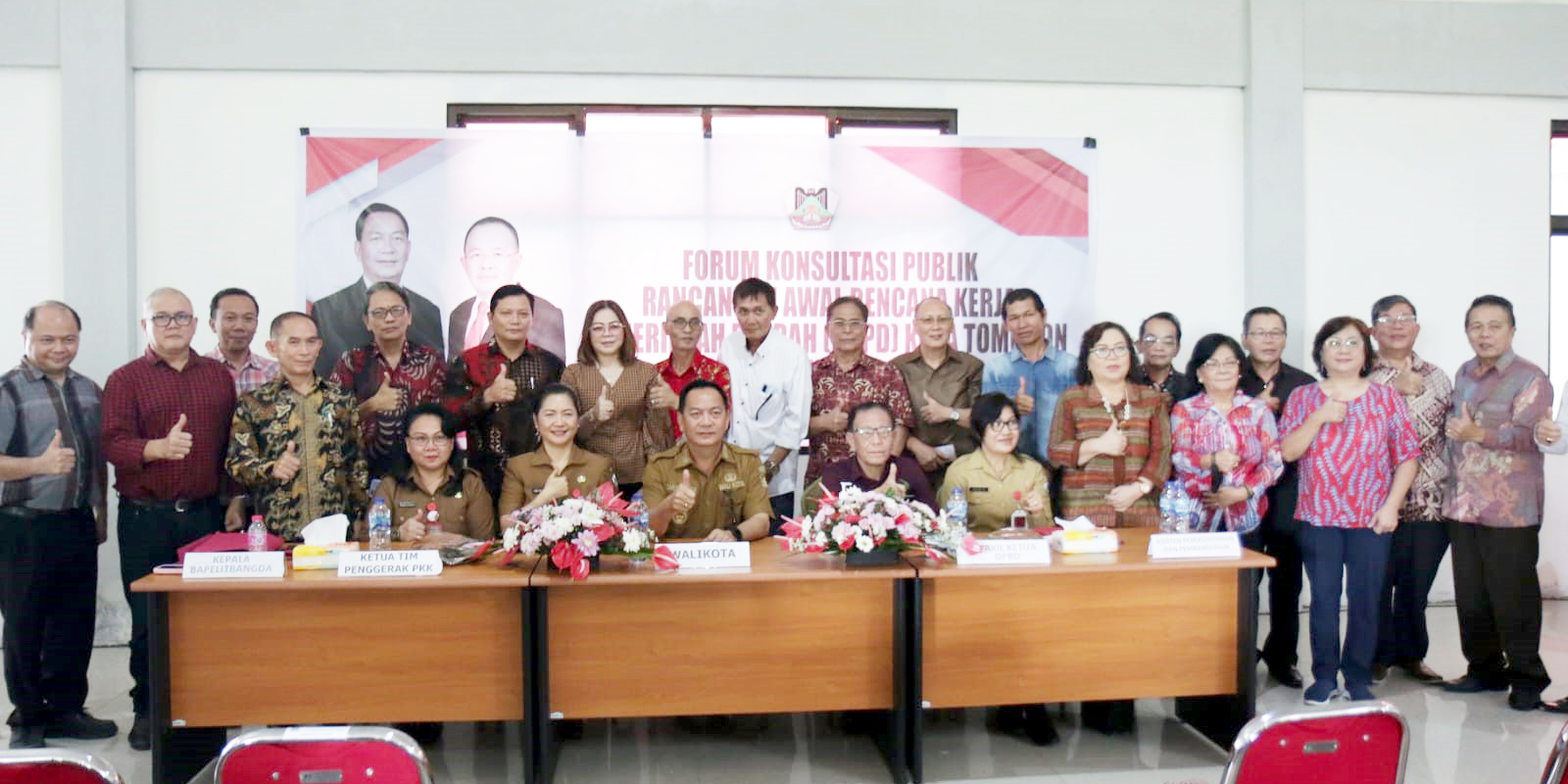 Walikota Tomohon Caroll Joram Azarias Senduk SH menghadiri Forum Konsultasi Publik Rancangan Awal Rencana Kerja Pemerintah Daerah (RKPD) Kota Tomohon Tahun 2024. Kegiatan ini berlangsung di gedung Michinoeki Pakewa Tomohon, Selasa (31/1/23).