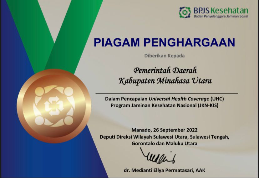 Bagi masyarakat Kabupaten Minahasa Utara (Minut), perlu ketahui bahwa sejak September tahun 2022 jaminan kesehatan Minut sudah memiliki predikat Universal Health Coverage (UHC).