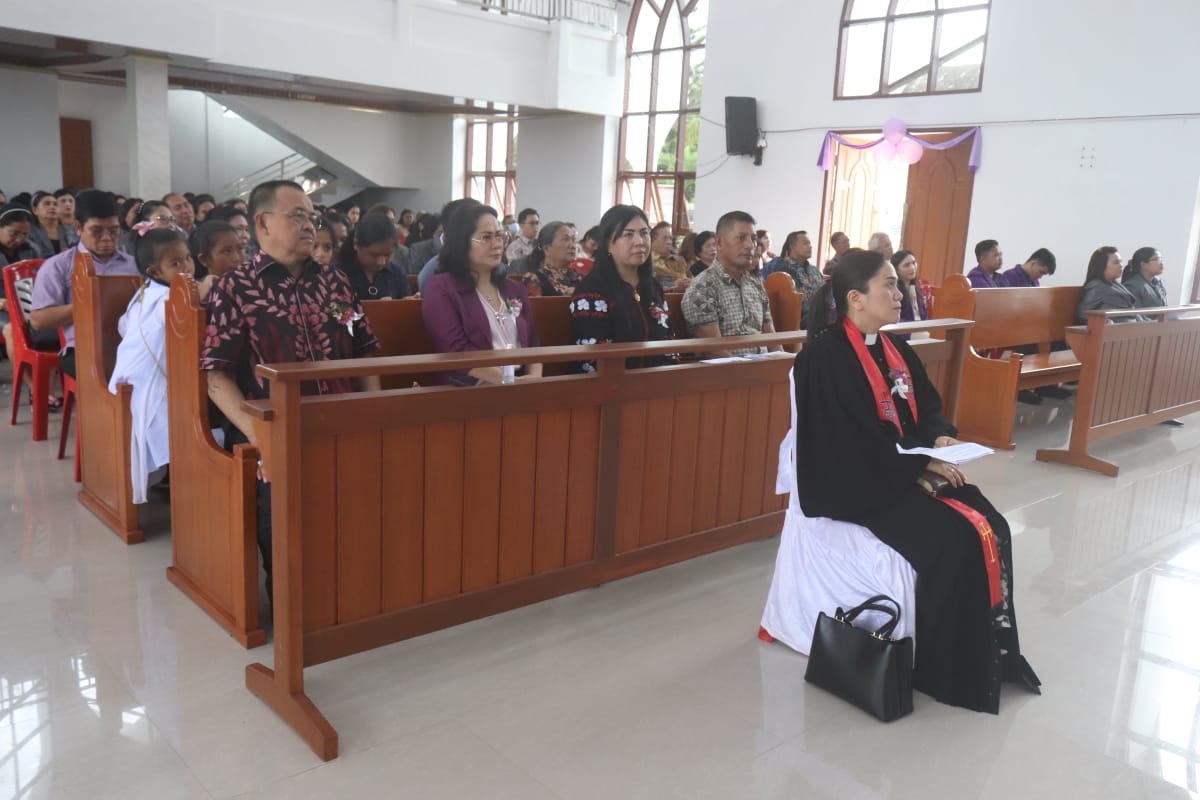 Hadir dalam acara tersebut perwakilan Kajari Tomohon Kasie Intelejen Dedy Karto Ansiga, Ketua BPMJ GMIM Winalian Pdt Frederik Lantang STh S PSi bersama Pelsus dan jemaat, unsur BPMJ dan Pelsus GMIM Sola Gratia Matani Wilayah Tumpaan. (rommy kaunang)
