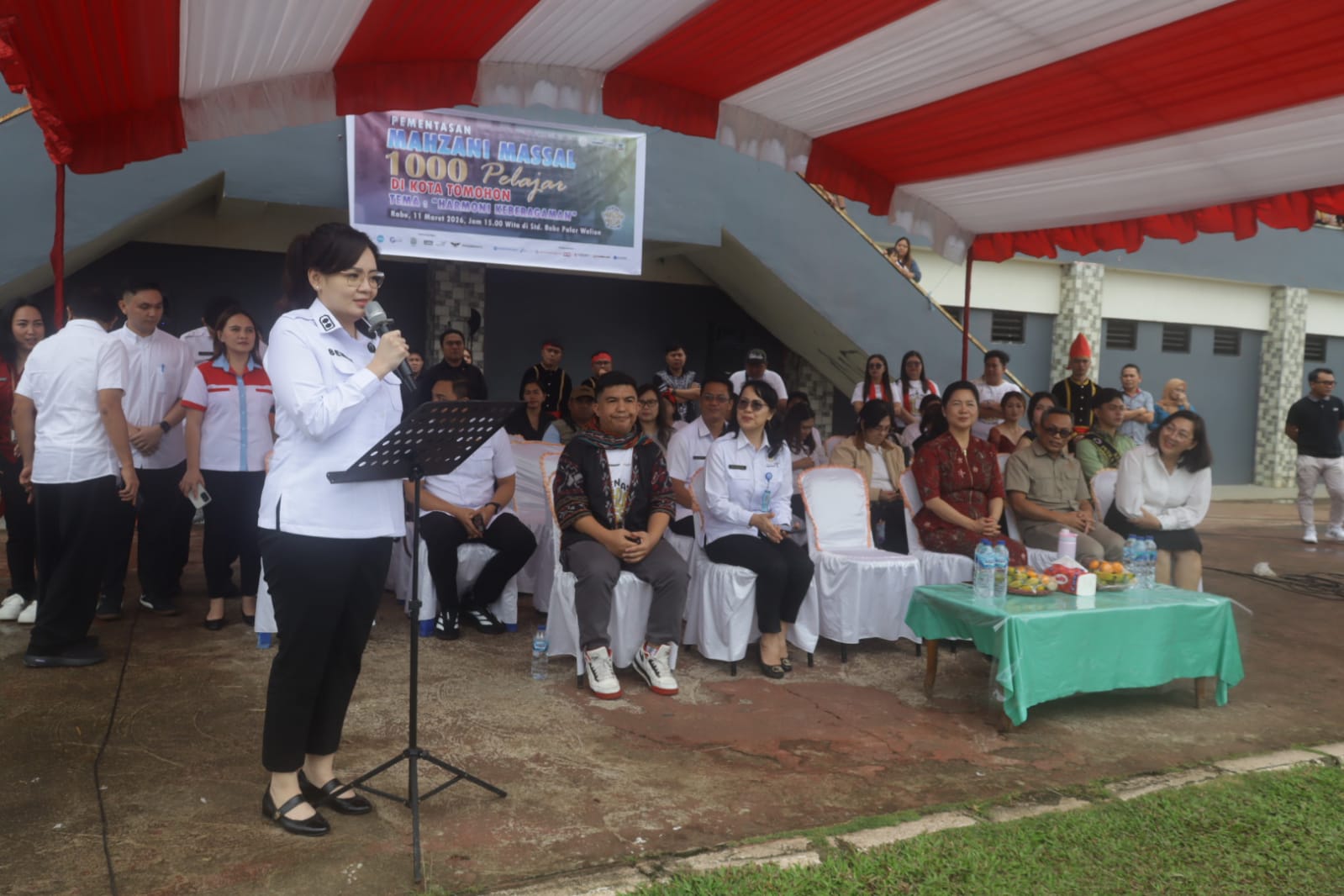 Wakil Walikota Tomohon, Sendy G. A Rumayar, SE, M.I. Kom., bersama Ketua TP-PKK Kota Tomohon, drg. Jeand 'arc Senduk-Karundeng, menghadiri sekaligus membuka secara resmi kegiatan Pementasan Mahzani Massal dengan tema "Harmoni Keberagaman" yang berlangsung di Lapangan Stadion Babe Palar Tomohon.