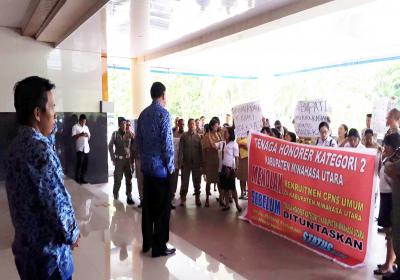 Wilayah Kaki Klabat sejenak riuh ramai. Para demonstran dari honor..